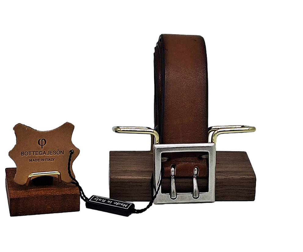La Cintura doppio ardiglione è realizzata in cuoio vegetala.