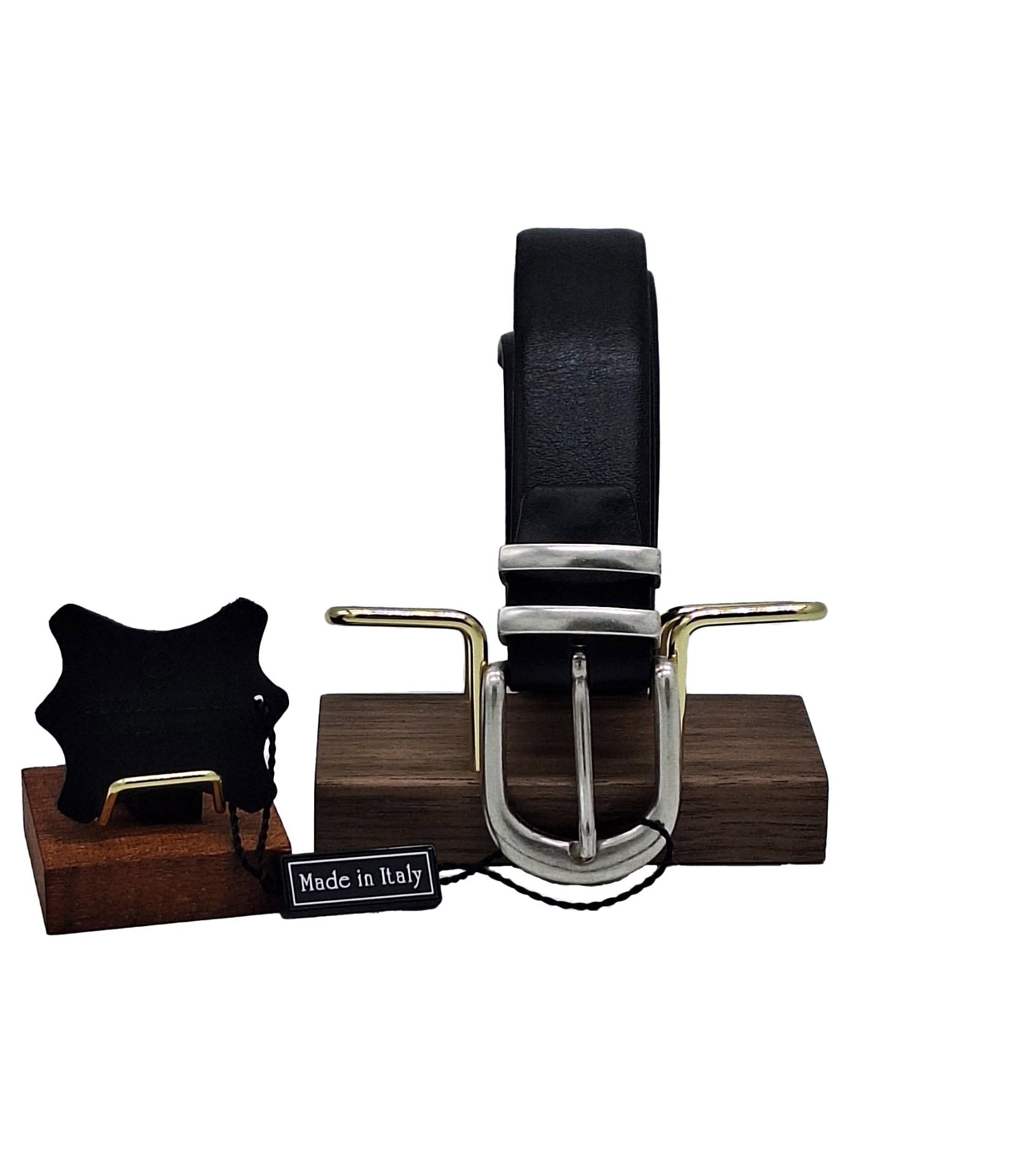 Cintura in pelle con doppio passante in metallo realizzata interamente a mano  con fibbia in argento made in italy.