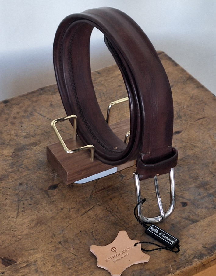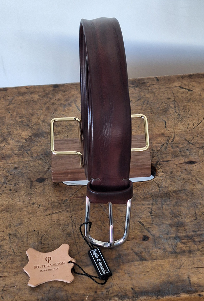 Cintura conciata al vegetala realizzata interamente a mano. La cintura ha uno spessore di 3.5 mm , alta 35 mm con fibbia in ottone made in italy.